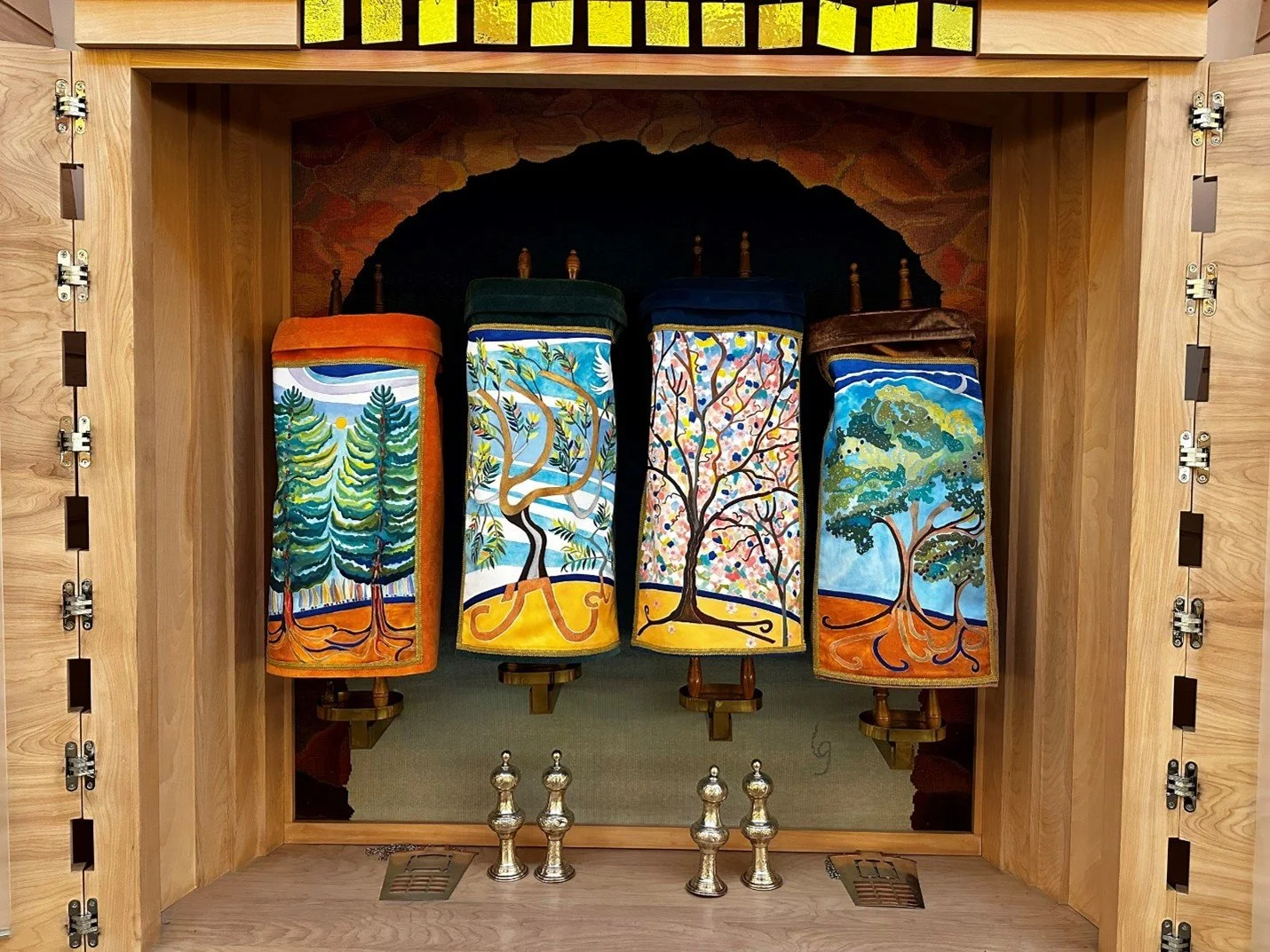 A dedicated group of lay leaders partnered with Nina to create designs that reflect the spirit of our community. The new Torah covers were unveiled during Simchat Torah. We invite you for Shabbat Services to see them for yourselves, first hand.